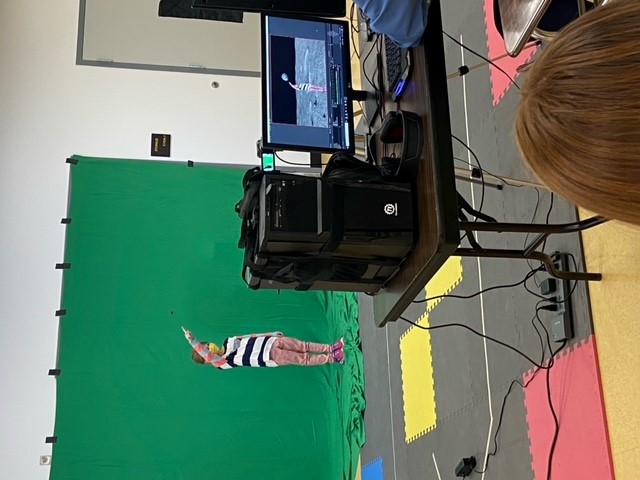 In the pictures below, you can see the green screen technology at work, with the green backdrop replaced with the moon and Mars backgrounds on the computer screen in the photos.
