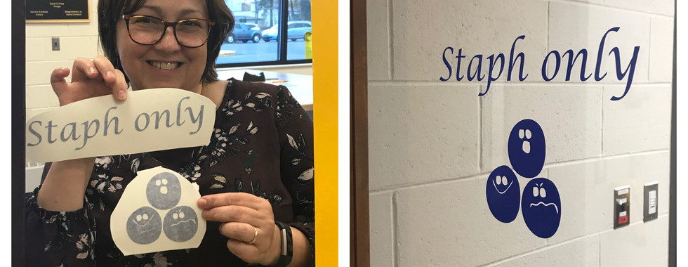 In preparation for the workshop, teachers were asked to measure the area where they planned to install their creation. Since for many staff, this was their first time working in Corel Draw and using a vinyl cutting machine, Fab Lab Coordinator, Mary Jo Hutchinson asked the teachers to “keep it simple for best results”.