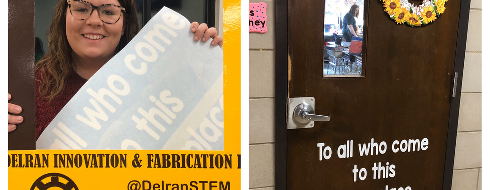 On October 29, 2019, over 40 teachers from Delran Township Schools participated in the first installment of the Teacher Professional Development Series in the Delran Innovation & Fabrication Lab. The first event was a Vinyl Decal Workshop. In collaboration with the Delran Education Association, who provided refreshments, teachers were encouraged to “green” the event by bringing their own refillable water bottles.